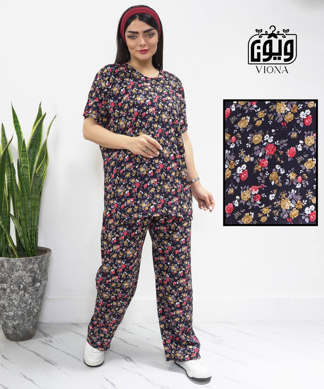 ست تیشرت شلوارراحتی زنانه نخی تایلندی طرح میکس فری سایزمناسب تا ۴۸