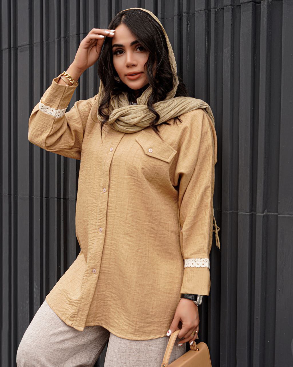 شومیزمانتویی زنانه مدل مچ گیپورکنفی طرح استین کیمونو جنس شانتون فری سایز