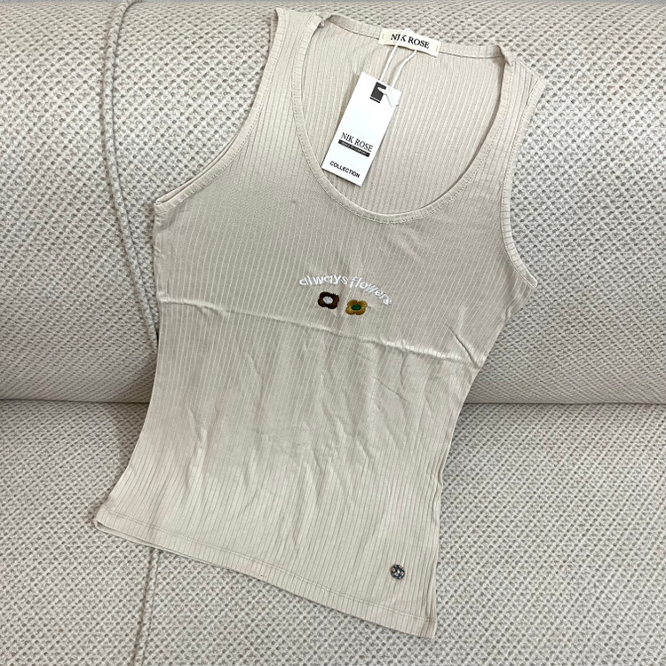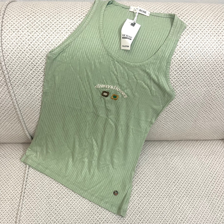 این تاپ رکابی با گلدوزی و دکمهدوزی ظریف، از جنس پارچه کبریتی تولید شده. فری سایز و طراحی فانتزی و شیک.
