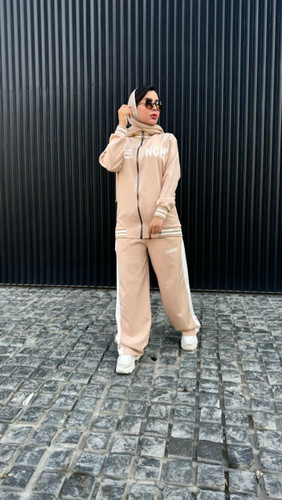 ست سویشرت شلوار زنانه جنس مازراتی بهاره تک رنگ کرم