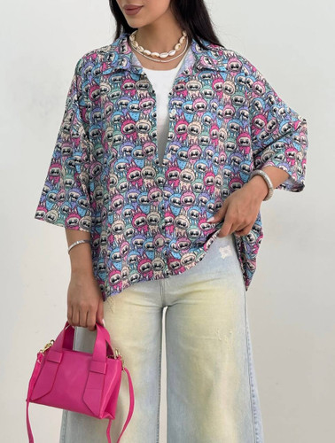 شومیزدخترونه طرح عروسکی چاپی جنس سوپر سافت فری سایز